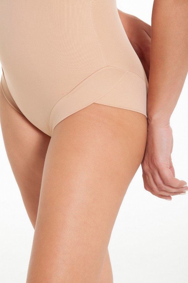 Il capo Valentine è realizzato in morbido tessuto elastico, dall’effetto setoso al contatto sulla pelle. Il davanti è completamente rinforzato al suo interno da due tessuti: uno in tulle elastico e l’altro in raso monoelastico bloccato, che garantiscono una perfetta azione modellante su tutta la silhouette. La particolarità di questo capo è nel girogamba, strutturato con tessuto doppiato e sovrapposto a forma di incrocio che permette di: