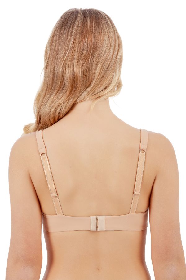 È completamente liscio, perfetto per scomparire sotto gli abiti e diventare invisibile anche sotto capi aderenti. Le coppe preformate, senza ferretto, offrono un sostegno naturale grazie a una struttura interna studiata per garantire forma e stabilità, ma senza nulla di rigido a contatto con la pelle.